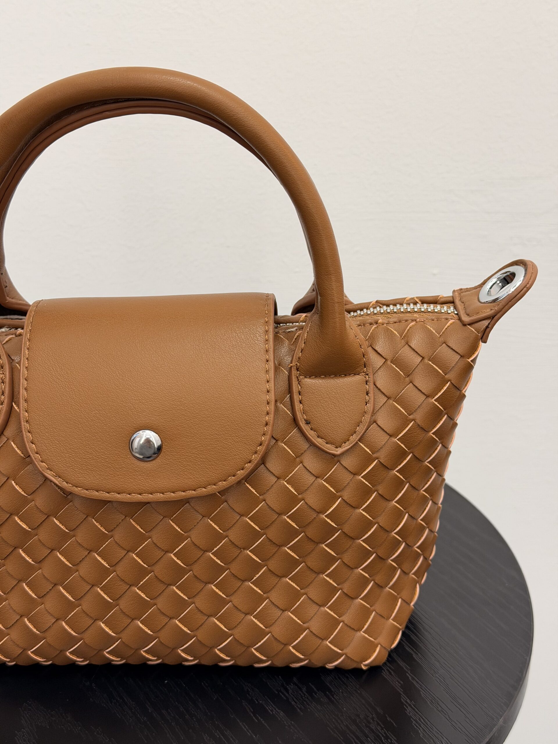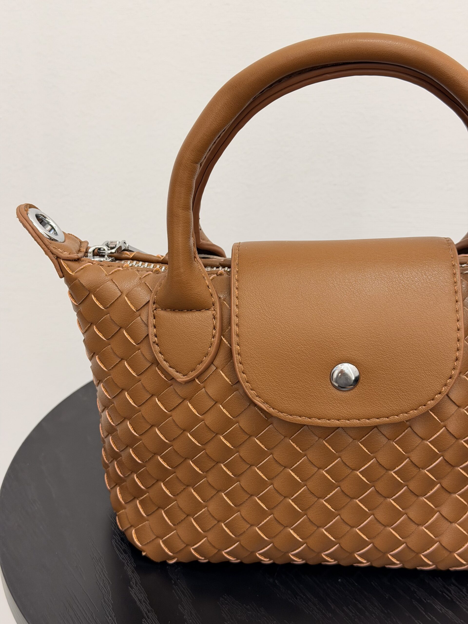 Bolso marrón camel trenzado estilo elegante 🤎